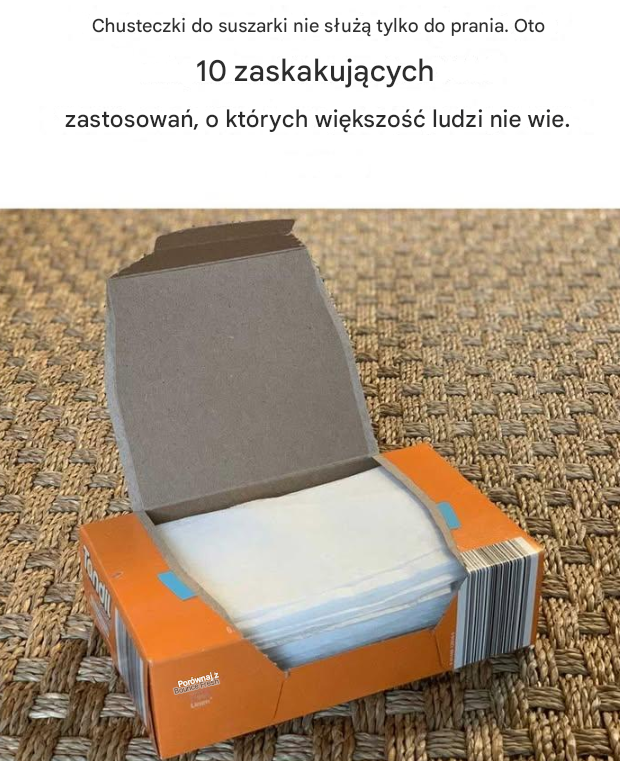 W Twojej szafce leży pudełko płatków do suszarki? Brawo – właśnie masz w domu darmowy odświeżacz, odpychacz komarów i super-ściereczkę w jednym! Oto 10 lifehacków, które sprawią, że będziesz żałować, że nie znałaś ich wcześniej.