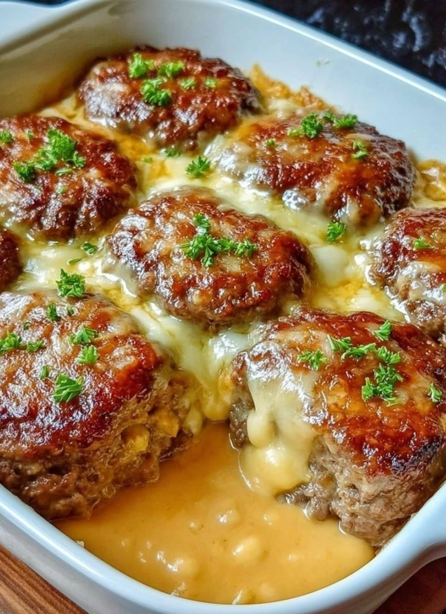 Za każdym razem, gdy podaję to danie na kolacji, reakcja jest taka sama – cisza przy stole, a po chwili pytania o przepis. Amish Hamburger Steak Bake to klasyczny, sycący obiad w starym, domowym stylu, który łączy proste składniki w coś naprawdę wyjątkowego. Nie ma tu modnych dodatków ani skomplikowanych technik. Jest za to smak, który kojarzy się z domem, spokojem i solidnym posiłkiem.