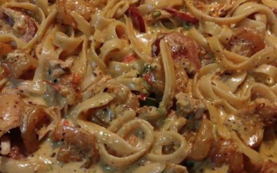 Makaron Cajun z krewetkami i kiełbasą to wyraziste danie pełne intensywnych smaków, które łączy krewetki, kiełbasę andouille oraz aromatyczne przyprawy…