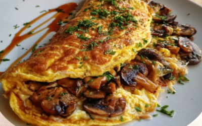 Omlet z pieczarkami i mozzarellą – puszysty, serowy i sycący