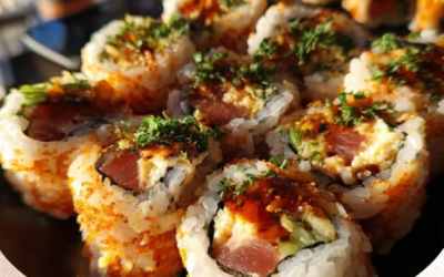 Składniki 200 g ryżu do sushi 3 łyżki octu ryżowego 1 łyżka cukru 1/2 łyżeczki soli 4 płaty nori 100…