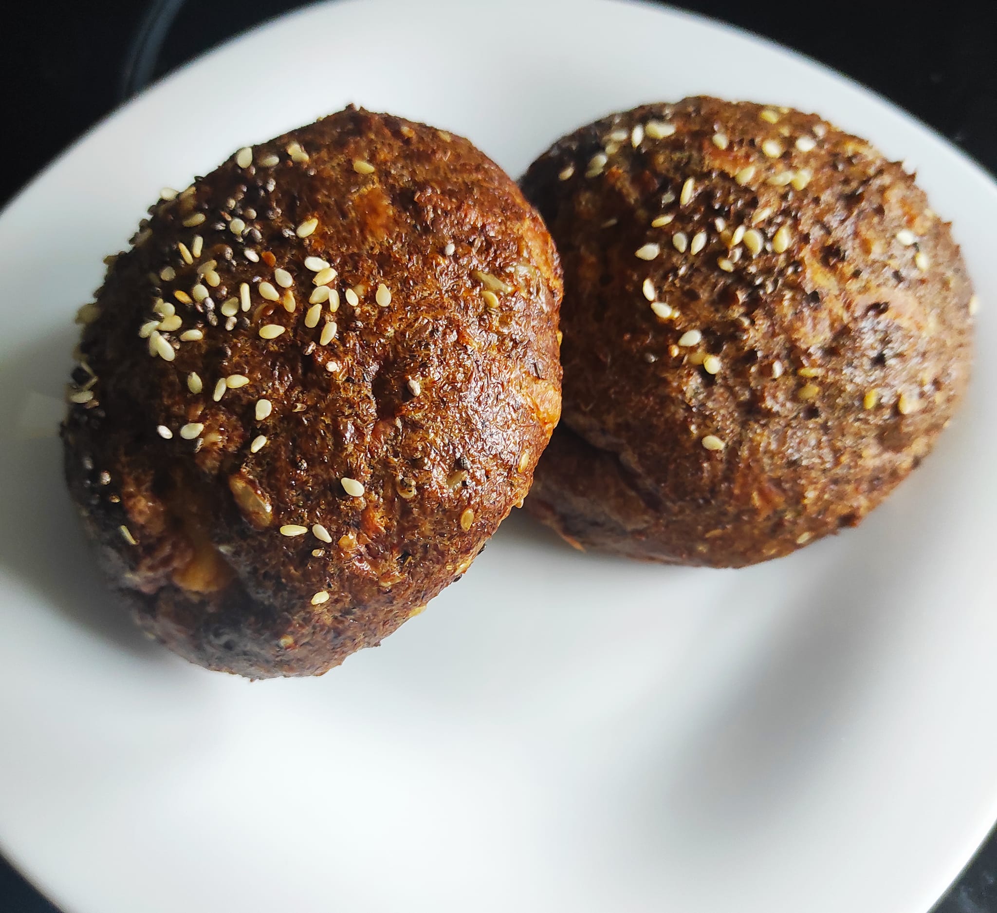 Wszystko miksujemy i odstawiamy na chwile, żeby babka jajowata napęczniała, dzięki czemu swobodnie będziemy mogli formować bułeczki. Bułeczki posypujemy np. sezamem. Piekarnik nagrzewany do 160°C i pieczemy 45-50 minut.