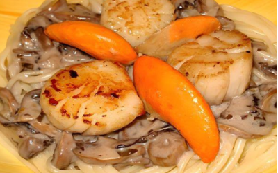 Przegrzebki na gnieździe spaghetti z sosem grzybowym – danie świąteczne