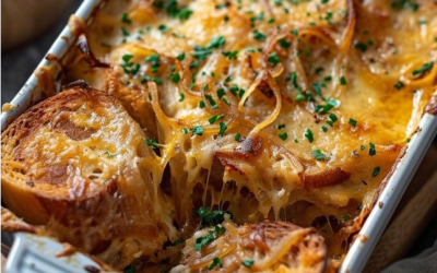 Zapiekanka inspirowana francuską zupą cebulową – komfort w najlepszym wydaniu