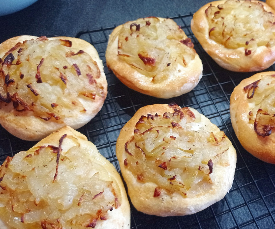 Dzisiejsze cebulaki to klasyczna, domowa wersja miękkich, delikatnych bułeczek z hojnie nałożonym farszem z duszonej cebuli. Całość piecze się w airfryerze, co pozwala uzyskać równomierne wypieczenie zarówno spodu, jak i wierzchu — zwłaszcza w modelu Cosori Dual Blaze, który korzysta z grzałek góra–dół. To szybka i efektowna propozycja idealna na kolację, przekąskę lub jako dodatek do zup. Cebula pozostaje miękka i słodkawa, a ciasto lekkie i puszyste.