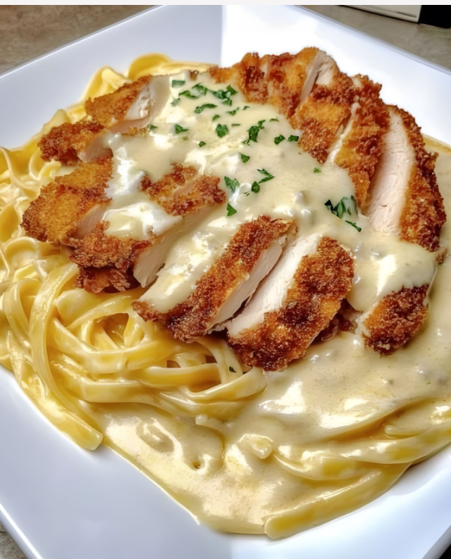 Chrupiący kurczak z kremowym makaronem to połączenie, któremu trudno się oprzeć. Soczyste, złociste filety z kurczaka w chrupiącej panierce doskonale komponują się z aksamitnym, bogatym sosem śmietanowo-serowym, który dokładnie otula makaron. To danie jest kwintesencją comfort food – sycące, aromatyczne i niezwykle satysfakcjonujące.