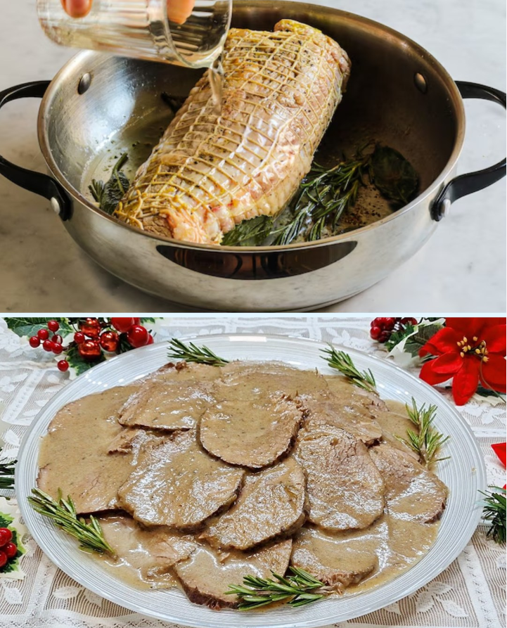 Arrosto di vitello in pentola to klasyczne danie kuchni włoskiej, w którym najważniejszą rolę odgrywa czas i cierpliwość. Odpowiednio przygotowana cielęcina staje się tak miękka, że można ją kroić niemal łyżką, a powstały podczas duszenia sos jest gęsty, aromatyczny i pełen głębokiego smaku. Sekretem tego dania jest powolne gotowanie w szczelnie przykrytym garnku, które pozwala mięsu zachować soczystość i delikatną strukturę.