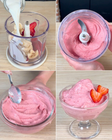 Połączenie mrożonych truskawek i bananów zapewnia naturalną słodycz oraz aksamitną konsystencję, a mleko nadaje całości kremowości. To idealna propozycja dla dzieci, dorosłych, a także dla osób, które chcą ograniczyć ilość przetworzonych słodyczy w diecie.