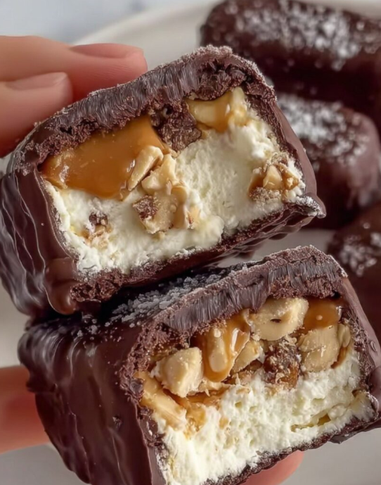 Domowe mrożone batony Snickers to deser, który zachwyca smakiem klasycznego batonika, a jednocześnie oferuje lżejszą, bardziej naturalną alternatywę. W tej wersji zamiast sztucznych dodatków wykorzystuje się proste składniki, takie jak mleko kokosowe, masło orzechowe, miód lub syrop klonowy oraz gorzką czekoladę. Efektem są kremowe, warstwowe batoniki z nutą waniliowych lodów, aksamitnego karmelu orzechowego, chrupiących orzeszków ziemnych i delikatnej czekoladowej polewy.