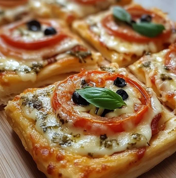Te chrupiące przekąski z ciasta francuskiego w stylu pizzy to prawdziwy hit każdego przyjęcia. Są szybkie w przygotowaniu, efektowne i niezwykle aromatyczne. Łączą w sobie wszystko, co kochamy w pizzy – sos pomidorowy, ciągnącą się mozzarellę i wyraziste pepperoni – z lekkością i kruchością dobrze wypieczonego ciasta francuskiego.