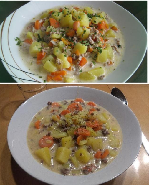 Kartoflany kociołek z mięsem mielonym i śmietaną to klasyczne, rozgrzewające danie jednogarnkowe, które doskonale sprawdza się szczególnie w chłodniejsze dni. Jest pożywne, aromatyczne i bardzo proste w przygotowaniu, a wszystkie składniki są łatwo dostępne. Połączenie ziemniaków, warzyw, mięsa mielonego oraz delikatnie kwaśnej śmietany tworzy harmonijny smak, który przypadnie do gustu całej rodzinie.