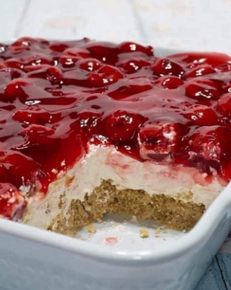 Klasyczny Cherry Delight to prosty deser bez pieczenia, który od lat cieszy się niesłabnącą popularnością. Jego ponadczasowy charakter sprawia, że doskonale sprawdza się zarówno podczas świąt, rodzinnych spotkań, jak i w zwykłe dni, kiedy pojawia się ochota na coś słodkiego, ale niezbyt skomplikowanego. Połączenie maślanego spodu z herbatników, kremowego nadzienia w stylu sernika oraz błyszczącej, wiśniowej warstwy na wierzchu tworzy deser, który wygląda efektownie i smakuje wyjątkowo.