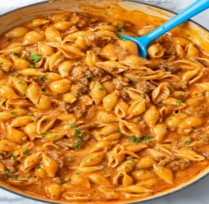 Kremowa wołowina z muszlami: Bogate i rozgrzewające danie