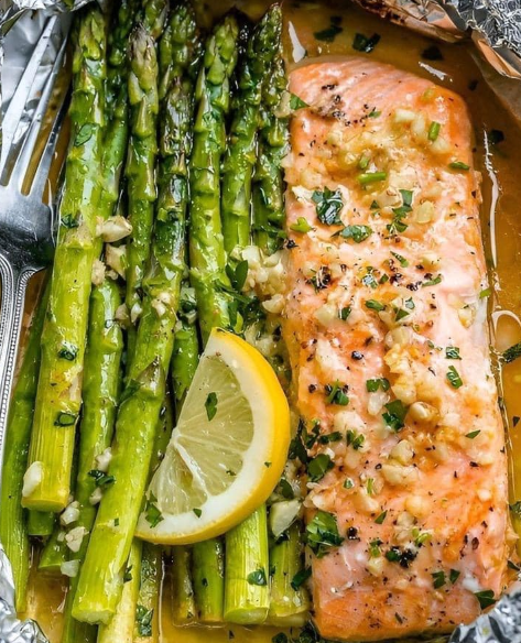 Łosoś pieczony w papilocie to jeden z tych przepisów, które łączą w sobie prostotę wykonania, wyrazisty smak oraz elegancką formę podania. Dzięki pieczeniu w zamkniętym pakieciku ryba zachowuje swoją soczystość, aromaty i wartości odżywcze, a dodatki – w tym przypadku delikatne szparagi oraz maślano-cytrynowy sos z czosnkiem – idealnie dopełniają całość.