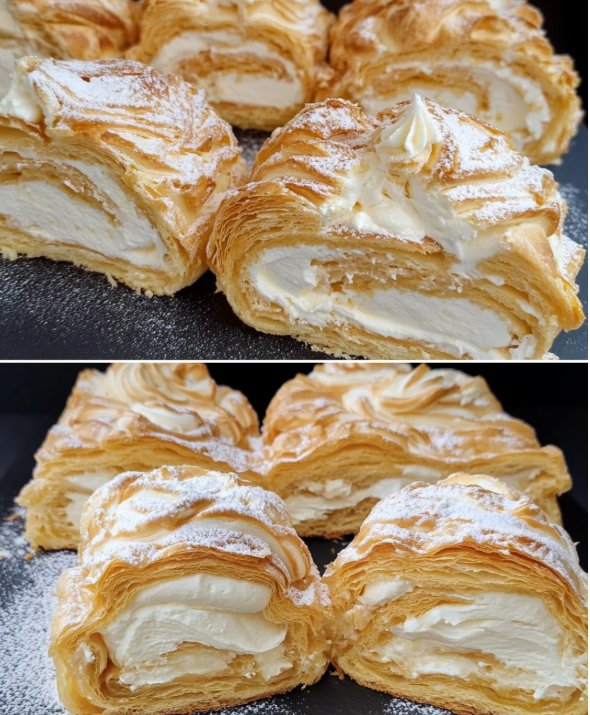 Połączenie chrupiącej, złocistej warstwy zewnętrznej oraz lekkiego, puszystego kremu sprawia, że deser wygląda niezwykle apetycznie i nie wymaga dodatkowych dekoracji. Całość dopełnia delikatne oprószenie cukrem pudrem, które podkreśla deserowy charakter wypieku.