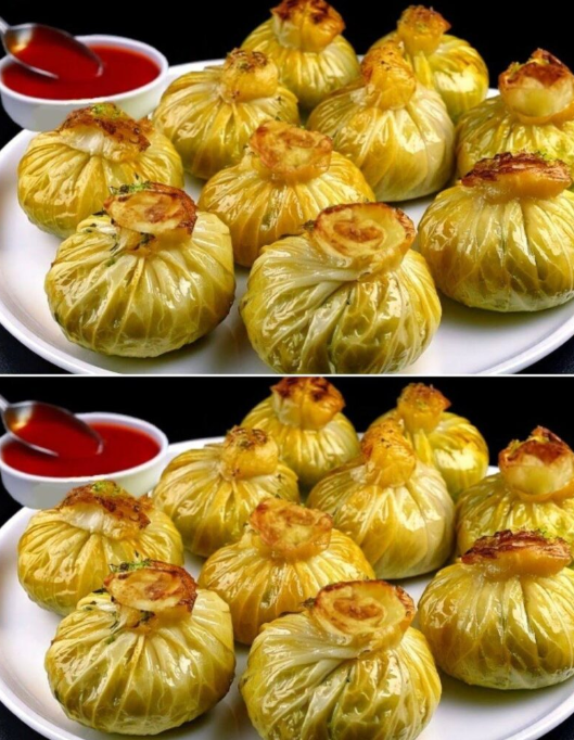Te niezwykłe momosy z kapusty potrafią zamienić zwykłe liście kapusty w eleganckie, małe pakieciki wypełnione aromatycznym farszem z ryżu, mięsa i grzybów. Starannie zawiązane niczym drobne prezenty i podawane z wyrazistym, pomidorowym sosem, robią ogromne wrażenie już od pierwszego spojrzenia. To danie, które łączy efektowną prezentację z głębokim, domowym smakiem.