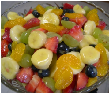 - Owoce według wyboru (np. jabłka, banany, winogrona, pomarańcze, truskawki, kiwi, ananas)