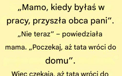 Dowcip dnia Dziewczynka siedząca przy stole niewinnie bawi się łyżeczką, patrząc na mamę. „Mamo, kiedy byłaś w pracy, do domu…