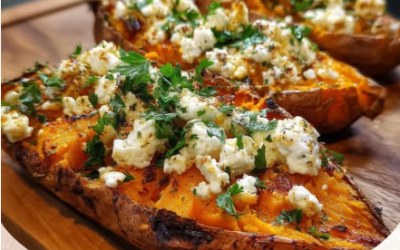 Pieczony batat z czosnkiem i fetą – zdrowy, aromatyczny i pełen wartości odżywczych