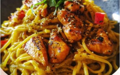 Słodko-pikantny makaron z kurczakiem – szybki i aromatyczny obiad
