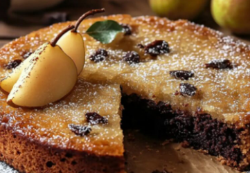 Wilgotne ciasto z gruszkami i kawałkami czekolady Ciasto fondant z gruszkami i kawałkami czekolady to klasyczny, domowy deser, który łączy…