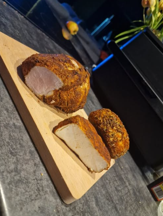 To bardzo proste, szybkie danie, w którym najważniejszą rolę pełni delikatny, soczysty łosoś przygotowany w airfryerze. Dzięki krótkiej obróbce w wysokiej temperaturze ryba zachowuje miękką strukturę, nie wysycha i pięknie się łuszczy po przekrojeniu widelcem. Dodatek ryżu oraz podsmażanych warzyw tworzy pełny, domowy posiłek, który można łatwo modyfikować. Całość wieńczy posypka z prażonej cebulki oraz odrobina chili – to opcjonalne, ale dodaje charakteru.