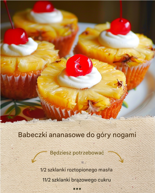 Babeczki ananasowe z odwróconym wierzchem to pyszny deser, który łączy w sobie soczyste kawałki ananasa, karmelowy sos i puszyste ciasto. Te małe, indywidualne wersje klasycznego ciasta ananasowego na pewno zrobią wrażenie na Twoich gościach. Oto jak przygotować te wyjątkowe babeczki: