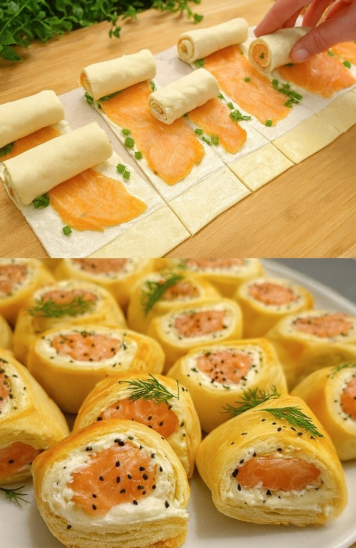 Te roladki z ciasta francuskiego to jedna z tych przekąsek, które znikają ze stołu niemal natychmiast po podaniu. Połączenie kruchego, maślanego ciasta z kremowym serkiem, aromatycznym szczypiorkiem i delikatnym wędzonym łososiem sprawia, że trudno poprzestać na jednej porcji. Doskonale sprawdzają się zarówno jako elegancka przekąska na przyjęcia, jak i szybki dodatek do kolacji lub spotkania w gronie rodziny.