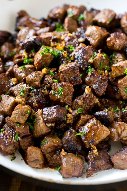 Jeśli masz wśród swoich bliskich miłośników mięsa, musisz koniecznie spróbować tych kawałków steku w maśle czosnkowym. Są pyszne i można je jeść prosto z patelni, nadziane na wykałaczki, albo podać na puree ziemniaczanym jako pożywne danie obiadowe.