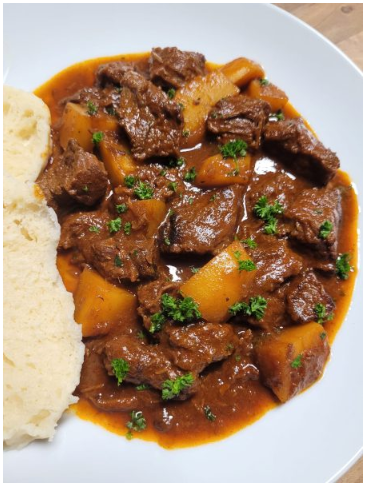 - 700 g Rindereintopffleisch, in Würfel geschnitten