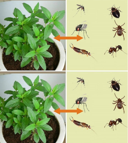 Większość owadów nie znosi zapachu mięty pieprzowej. Bardzo silny zapach mięty pomaga odstraszyć wiele owadów, takich jak ćmy, mrówki, muchy, komary i pająki, a także szkodliwe owady w ogrodzie warzywnym.