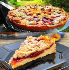 To wyjątkowo moelleux, czyli wilgotne i delikatne ciasto ze śliwkami, łączy w sobie kilka sprawdzonych elementów domowej klasyki: soczyste owoce, puszyste ciasto na bazie twarogu oraz aromatyczną kruszonkę z nutą cynamonu. Całość tworzy harmonijną kompozycję smaków i tekstur – miękkie wnętrze, owocową świeżość i lekko chrupiącą, maślaną górę.