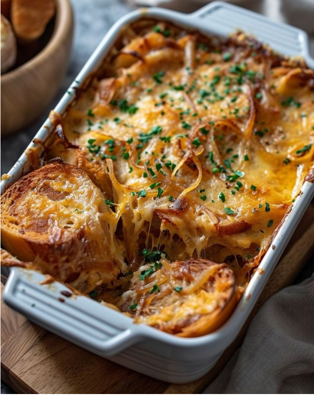 To naprawdę fantastyczny przepis! Widziałem, jak sąsiad przyniósł tę zapiekankę na osiedlową imprezę i… wszyscy byli nią absolutnie zachwyceni. Nic dziwnego – to danie łączy w sobie wszystko, co najlepsze w klasycznej francuskiej zupie cebulowej, ale w jeszcze bardziej sycącej, pieczonej formie.