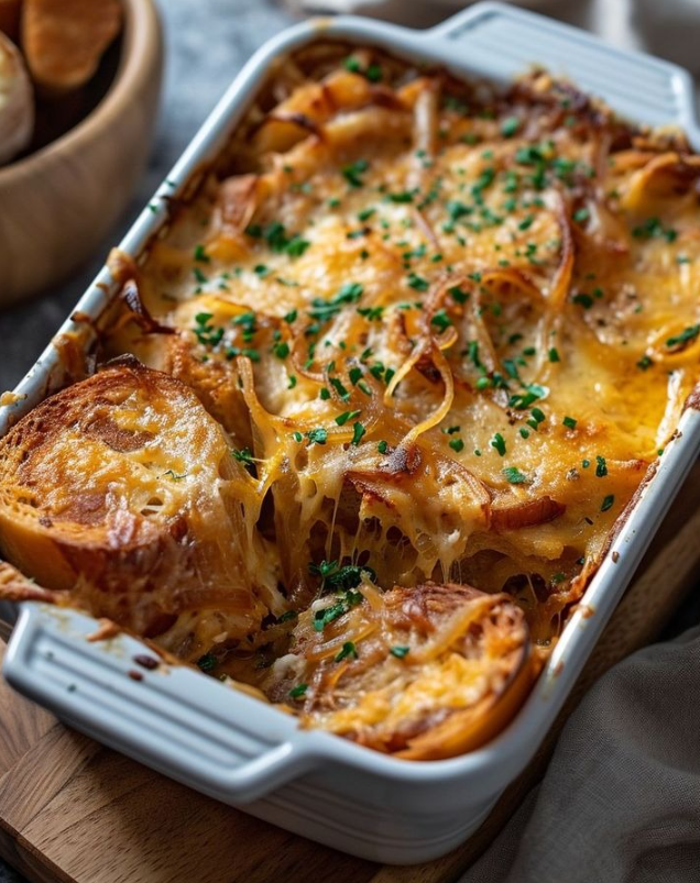 Fantastyczny przepis! Widziałam, jak sąsiad przyniósł to na imprezę i wszyscy byli zachwyceni! Cześć, przyjaciele! Dzisiaj z przyjemnością dzielę się przepisem na przełomowe danie: zapiekankę z francuskiej zupy cebulowej. Wyobraź sobie rozgrzewającą duszę, pocieszającą zupę przekształconą w sycącą zapiekankę pieczoną w piekarniku. To nowoczesna interpretacja ponadczasowego klasyka, idealna na chłodne wieczory lub gdy chcesz zaimponować gościom, poświęcając minimalną ilość czasu w kuchni. To w zasadzie comfort food, który obiecuje dostarczyć doznań wzbogacających duszę z każdym kęsem!