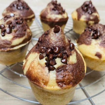 Muffiny marmurkowe z płynnym czekoladowym wnętrzem to idealna propozycja na zdrowy podwieczorek lub deser, który łączy przyjemność z rozsądnym podejściem do składników. Ta wersja jest lżejsza niż klasyczne muffiny, a mimo to pozostaje niezwykle wilgotna, miękka i pełna smaku. Połączenie delikatnego waniliowego ciasta z kakaową częścią oraz rozpływającym się środkiem z gorzkiej czekolady sprawia, że trudno poprzestać na jednej sztuce.