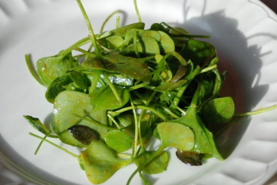W tej wersji portulak podawany jest na surowo, jako lekka, orzeźwiająca sałatka. Aby wydobyć jego najlepszy smak i przyjemną teksturę, warto lekko skrócić łodygi, pozostawiając jednak ich delikatną część. Sama jeszcze nie próbowałam wersji gotowanej, dlatego chętnie sięgam po sprawdzony wariant na zimno. Tutaj portulak został po prostu doprawiony odrobiną kurkumy – co ciekawe, była to inicjatywa samego maraîchera. Efekt? Prosty, naturalny i naprawdę pyszny.