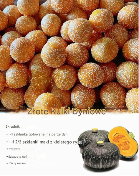 Złociste kuleczki dyniowe to delikatny, a jednocześnie sycący deser, który zachwyca kontrastem tekstur: chrupiącą skórką z sezamu i miękkim, sprężystym wnętrzem. Bazują na gotowanej na parze dyni oraz kleistej mące ryżowej, dzięki czemu po usmażeniu zyskują charakterystyczną elastyczność i subtelną słodycz. To propozycja idealna jako słodka przekąska, deser po obiedzie lub element domowego podwieczorku.